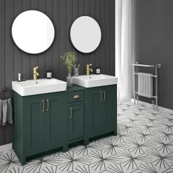 Chatsworth Traditional Green Double Basin Vanity + Cupboard Combination Unit