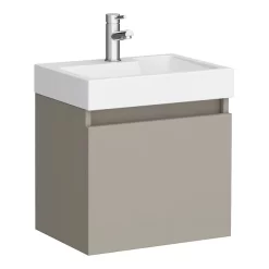 Arezzo Wall Hung Vanity Unit – Matt Green – 600mm 1-Drawer With Brushed Brass Handle