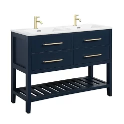 Montrose 1200mm Indigo Blue Double Basin Vanity Unit With Brushed Brass Handles And Slatted Shelf