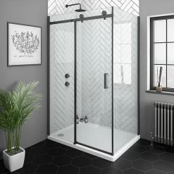 Arezzo Matt Black 1000 X 800 Frameless Sliding Door Shower Enclosure